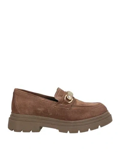 Woman Loafers Camel Size 8 Leather In Sand