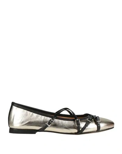 Woman Ballet Flats Platinum Size 8 Leather In Gray