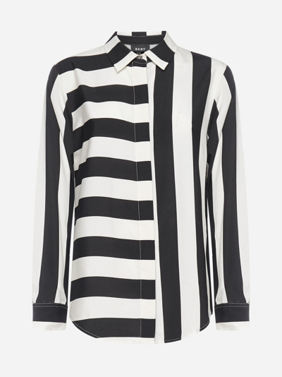 Mixed Stripe Button Down Shirt In Black Ivory