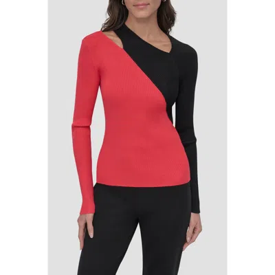 Colorblock Shoulder Cutout Long Sleeve Sweater In Watermelon Sugar