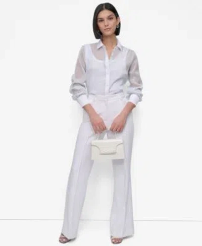 Womens Striped Button Front Shirt Flare Leg Pants In White