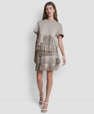 Womens Studded Fringe Short Sleeve T Shirt Studded Fringe Mini Skirt In Gray