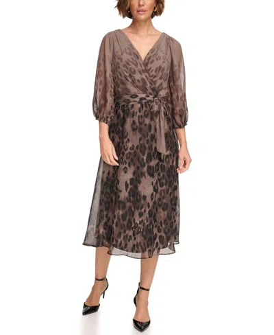 Womens Printed Faux Wrap Balloon Sleeve Dress 0p 16 In Black