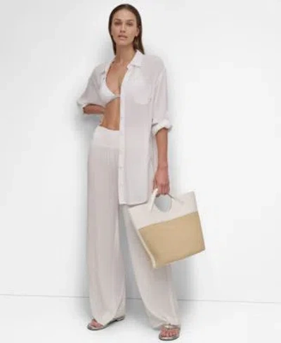 Women's Gauze Collared Button-front Beach Shirt In Black