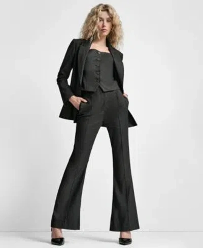 Womens Double Breasted Long Sleeve Blazer Button Front Sleeveless Vest Fit Flare Mid Rise Trousers In Black