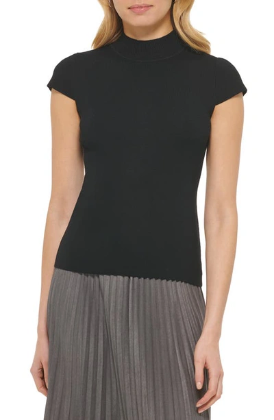 Cap Sleeve Mock Neck Top In Black