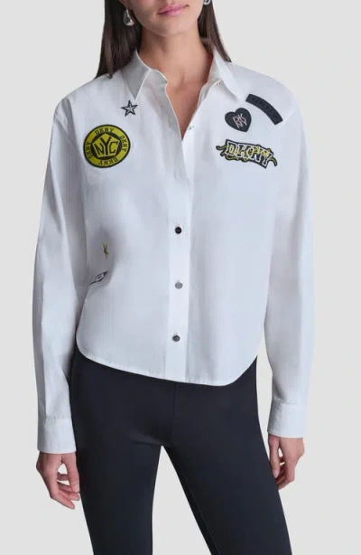 Patch Detail Cotton Button-up Shirt In White