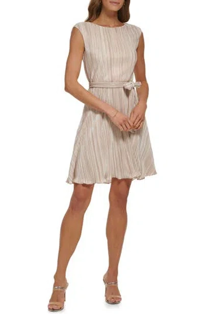 Pleated Multicolor Cap Sleeve Dress In Cream/gold