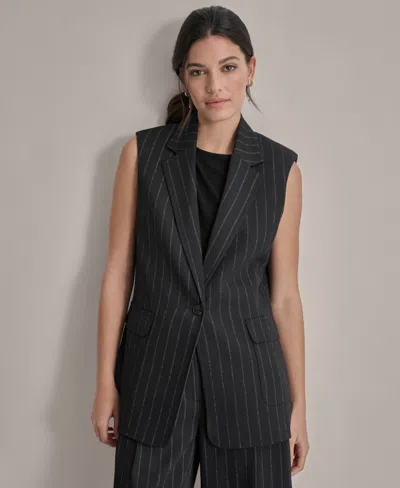 One Button Vest Women P Petite Black Striped Notch Lapel Collared Fts1256