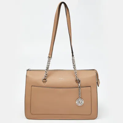 Beige Leather Large Bryant Chain Zip Tote In Sand