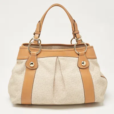 Pre-owned Beige/brown Monogram Canvas And Leather Front Zip Tote
