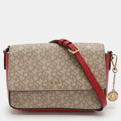 Pre-owned Beige/red Signature Coated Canvas And Leather Crossbody Bag