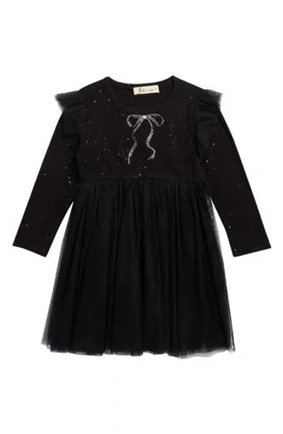 Kids' Bow Crystal Embellished Long Sleeve Tulle Dress In Black