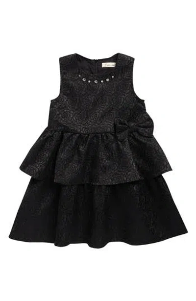Kids' Floral Jewel Neck Tiered Dress In Black