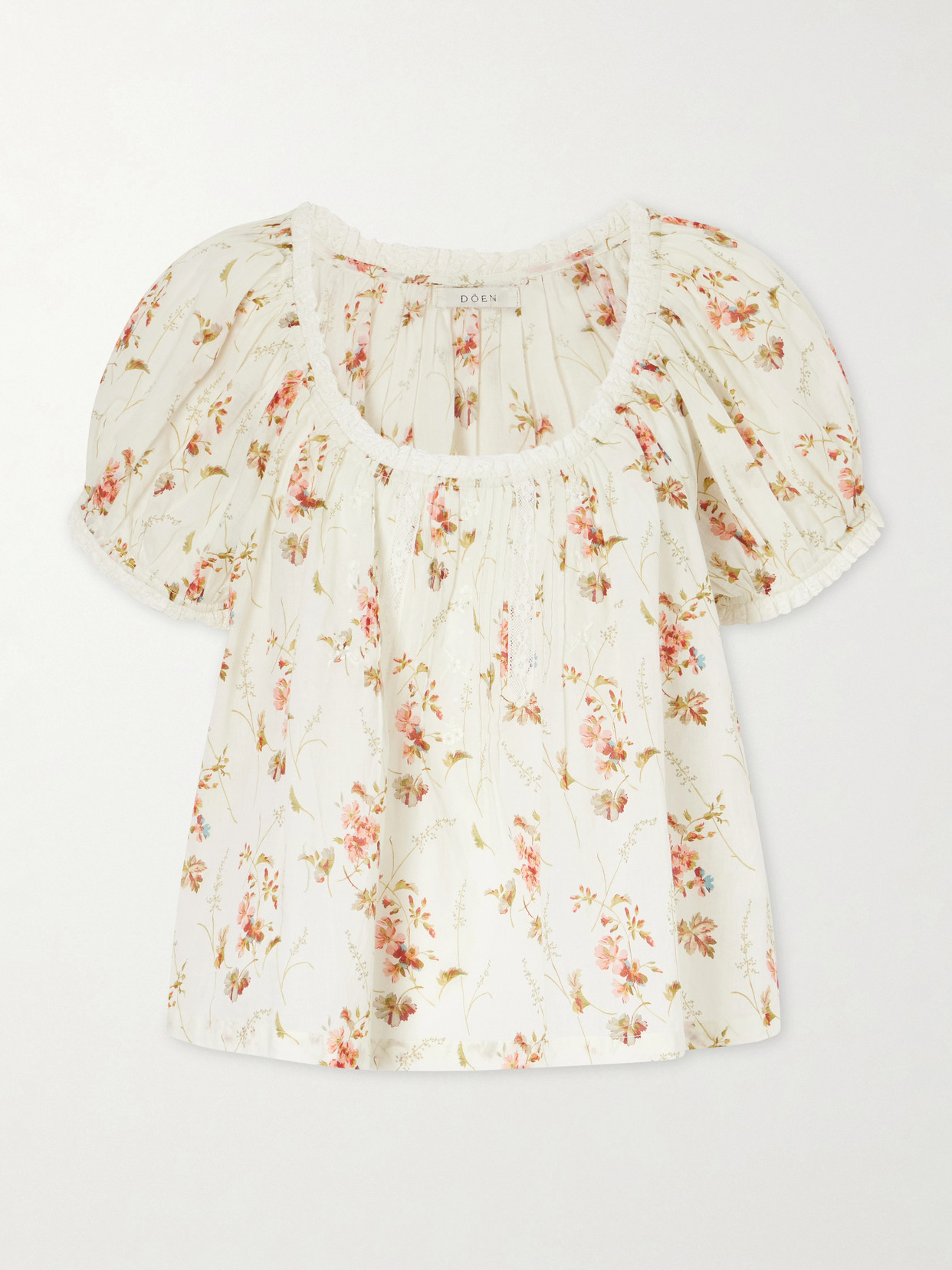 Frederica Lace-trimmed Floral-print Organic Cotton Blouse In White