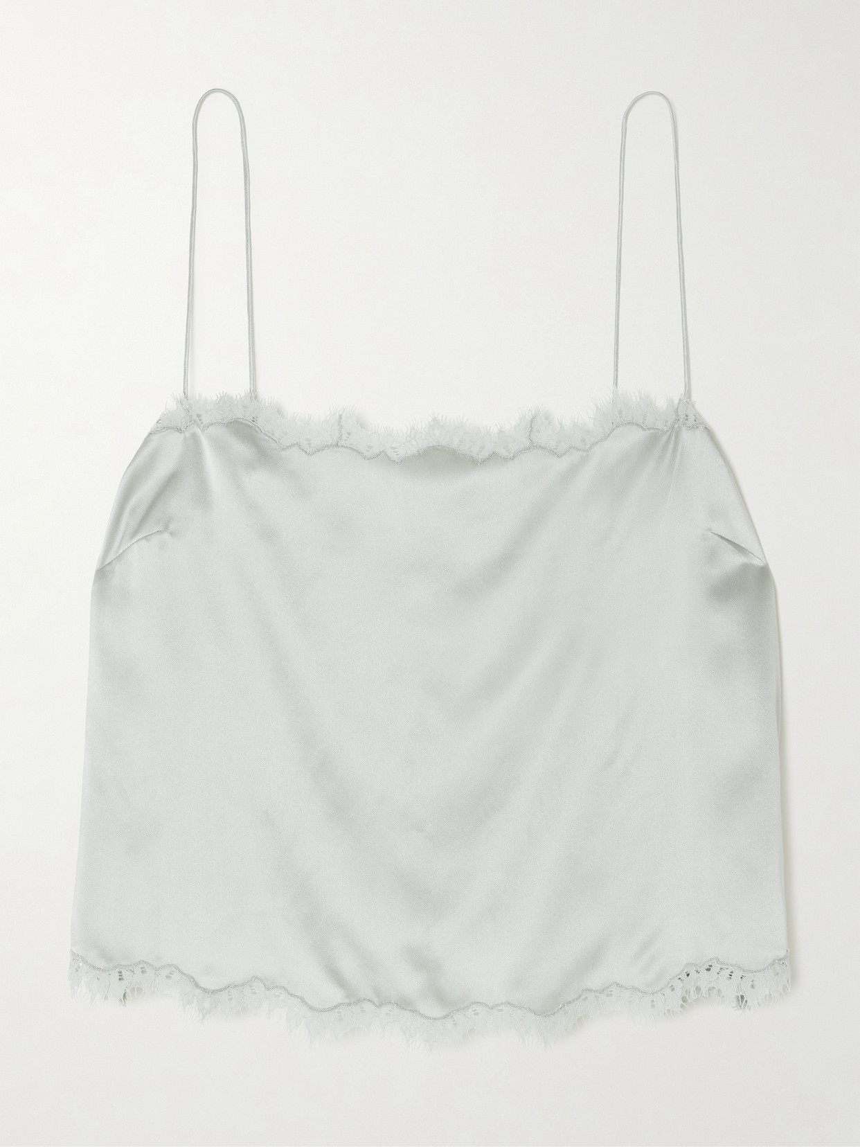 Loure Lace-trimmed Silk-satin Top In Yellow