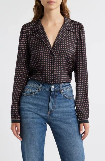 Dôen Juliana Paisley Print Silk Blend Button-up Shirt In Black