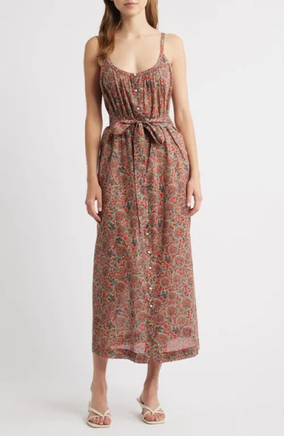 Dôen Bijou Floral Long Sleeve Organic Cotton Dress In Multi