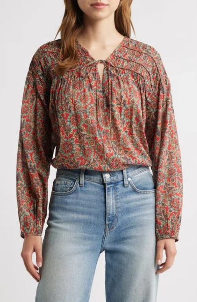 June Gathered Floral-print Organic Cotton-voile Blouse In Multi