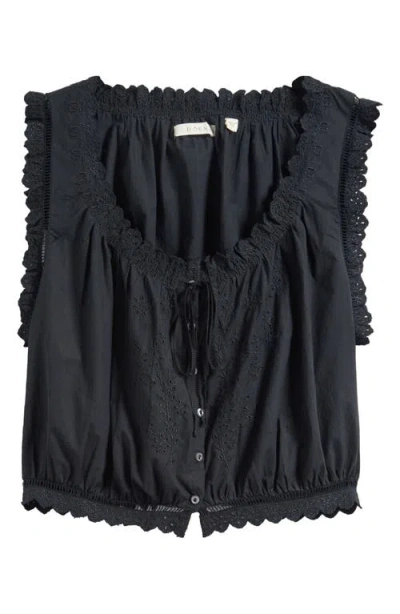 Dôen Hettie Embroidered Ruffle Organic Cotton Top In Black