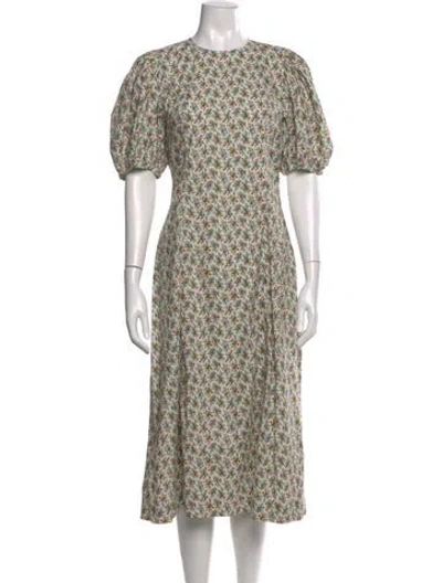 Pre-owned Floral Print Midi Length Dress In Neutral