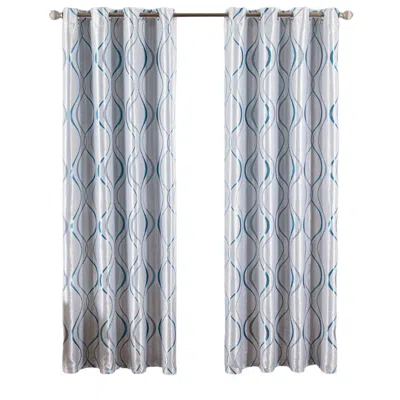 Curtains Damask Jacquard Grommet Semi-blackout In Blue