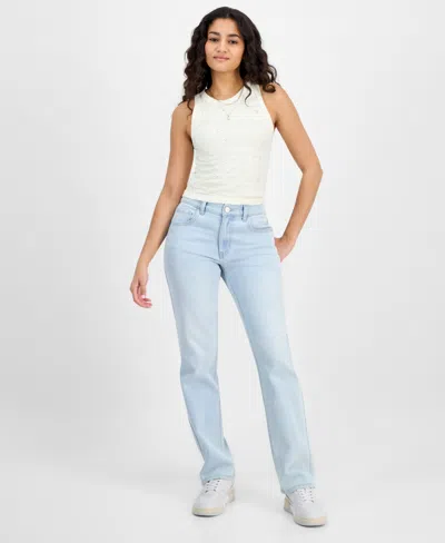 Juniors' High-rise Baggy Straight-leg Jeans In White