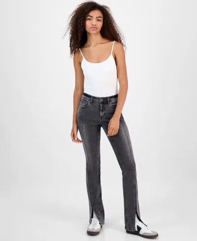 Juniors' Mid-rise Seamed Slit-cuff Bootcut Jeans In Black