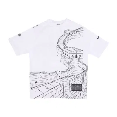 Men's T-shirt Chinese Wall Outline Over Tee White