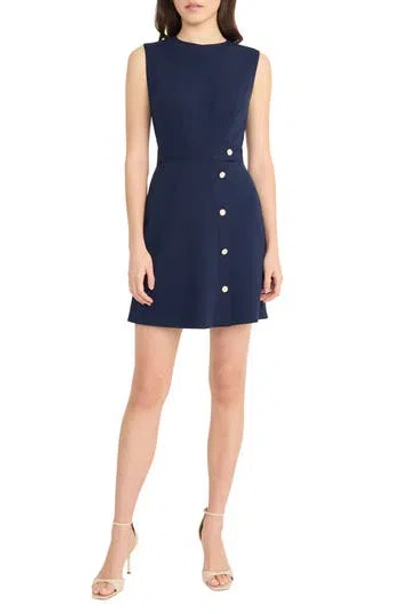 Button Detail Sleeveless Minidress In Navy Blazer