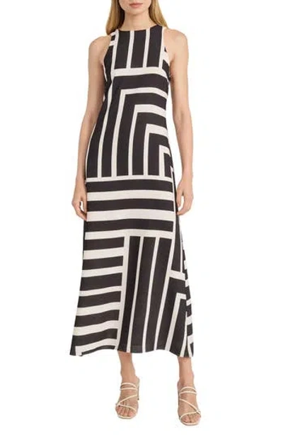 For Maggy Geometric Sleeveless Midi Dress In Black Taupe