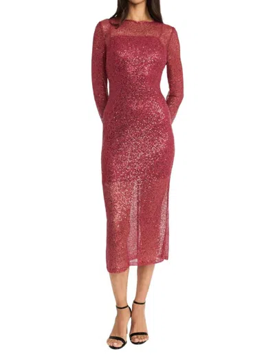 Netted Sequin Dress In Savvy Red In Burgundy