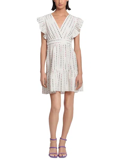 Ruffle Embroidered Eyelet Cotton Minidress In Colony Blue