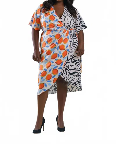 Pandora V-neck Midi Dress - Plus In Ivory Black Lemon In Multi