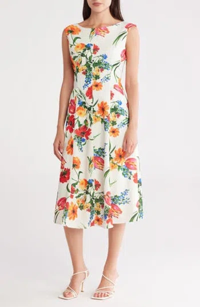 Women's Scoop Neckline Sleeveless Pullover Knit Floral Midi Dress In Blue Multi