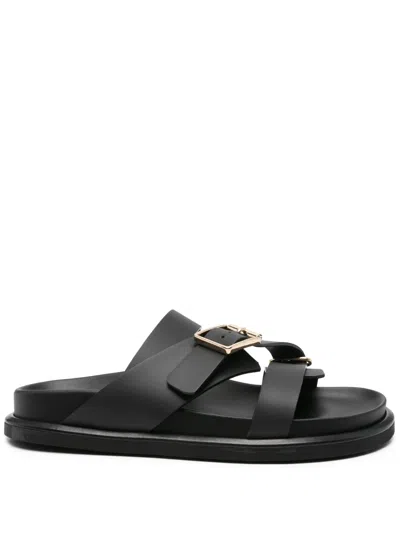 Buckle Detail Leather Sandals In Black