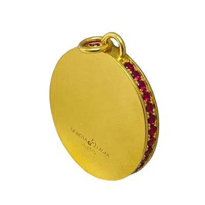 Women's Gold / Pink 22k Solid Gold Ruby Square Charm In Multi