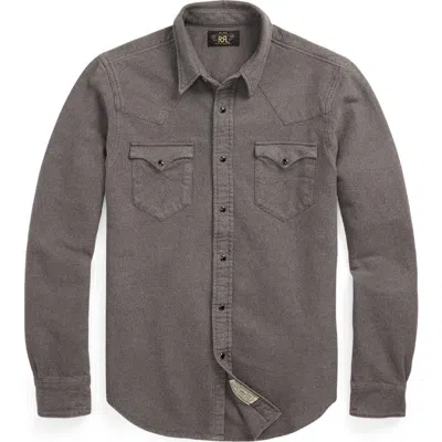 Slim Fit Cotton Chamois Snap-up Western Shirt In Gray