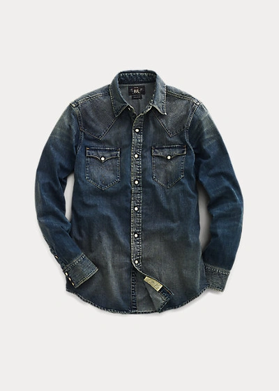 Ralph Lauren Rrl Ranch Logo Denim Trucker Cap In Gray