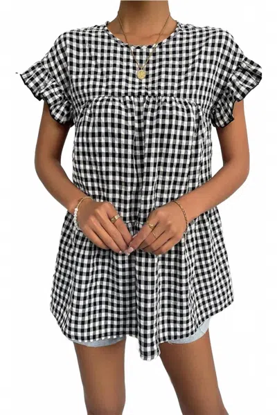 Short Sleeve Wrap Style Side Tie Top In Dark Navy Peach In Multi