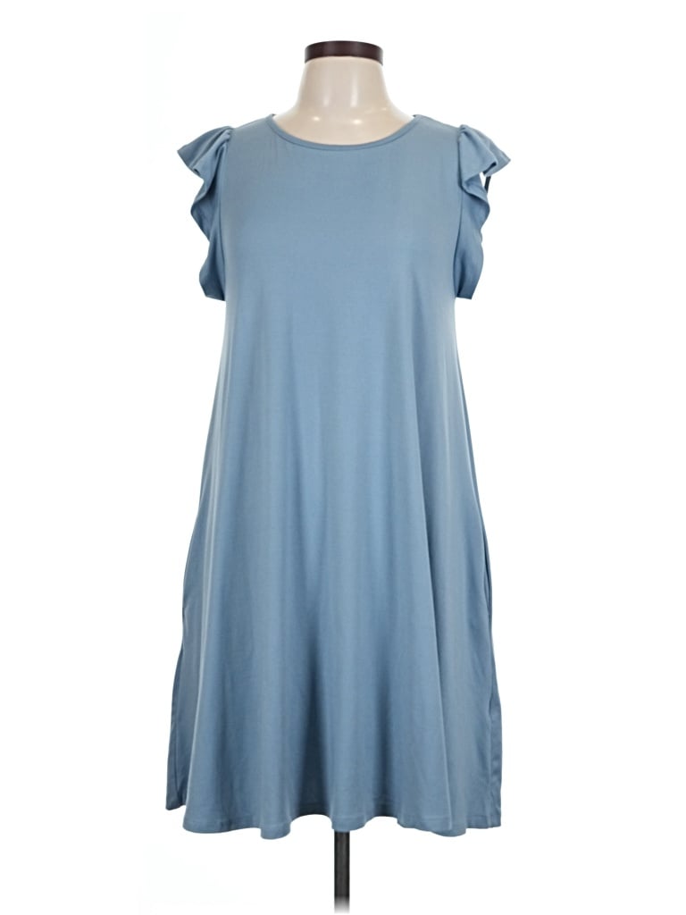 Pre-owned Tube Top Blue Solid Pattern Strapless Neckline Tops