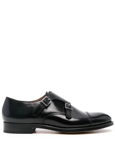 Woven Black Calf Leather Loafers With Dual Buckle Accents