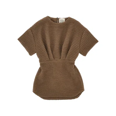 Stretch Viscose Seersucker Mini Dress Kids In Brown