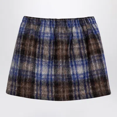 Kids' Grey/blue Wool Blend Checked Skirt In Multicolor