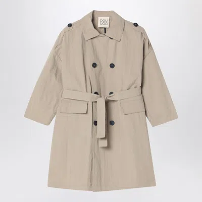 Beige Double-breasted Trench Coat In Nylon In Neutral