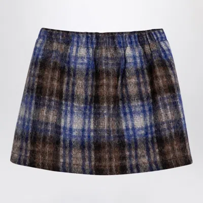 Grey/blue Wool Blend Checked Skirt In Multicolor