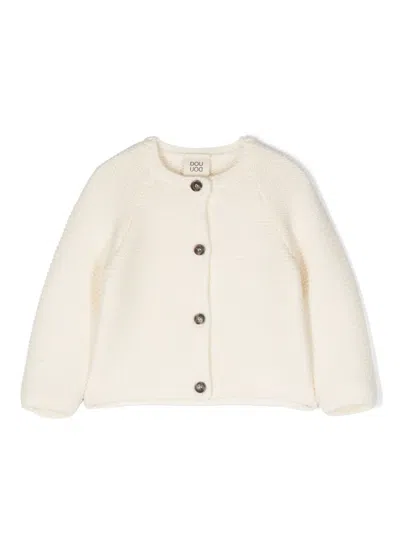 Babies' Crew-neck Tricot-knit Cardigan In Neutrals