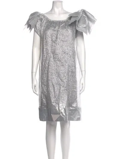 Pre-owned Bateau Neckline Knee-length Dress In Gray