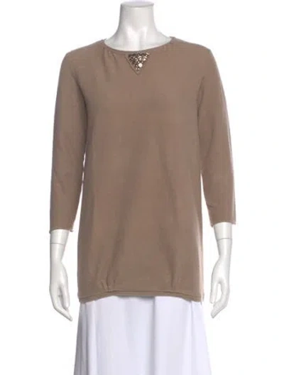 Pre-owned Crew Neck Three-quarter Sleeve Top In Neutral