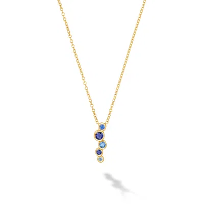 Women's Fine Yellow Gold Sapphire & Aquamarine Small Cascade Pendant